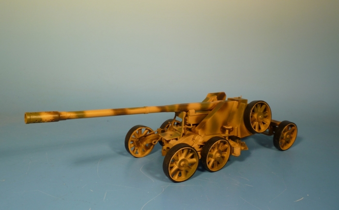 Unser neues Modell ist aus Metall gefertigt und vollbeweglich. Die Kanone lässt sich wahlweise in Fahrstellung und Feuerstellung bringen.